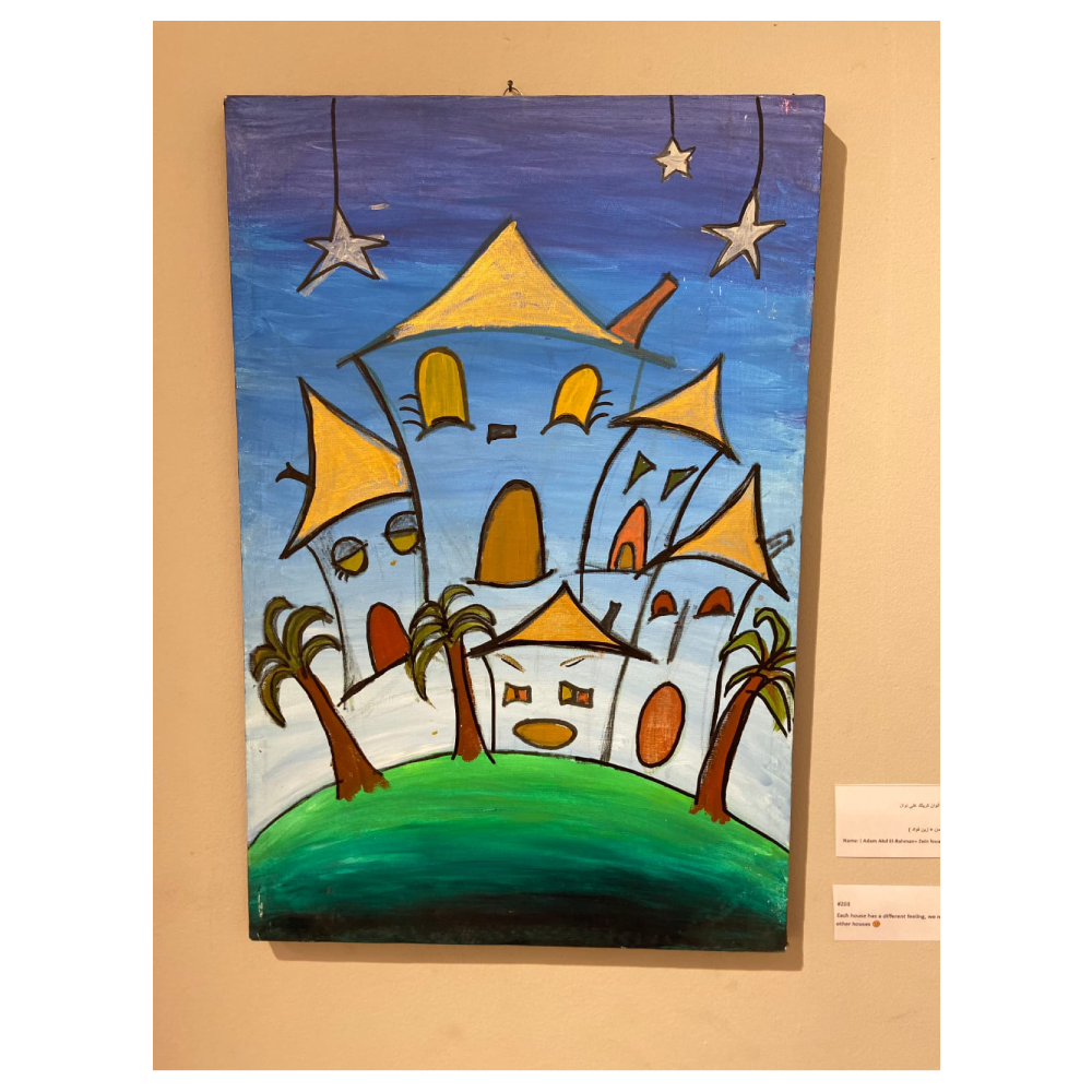 Our child re imagined his family in a beautifully unexpected way — turning each member into a living house. Each “home” carries the personality of its owner: sleepy, cheerful, moody, or playful. With this unique twist, the painting became full of movement and spirit, as if every house were telling its own story the way he sees it.